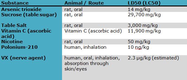 As said by Paracelsus a specific dosage or above is required to cause poisoning. This dosage is measured in LD50 value for dermal and oral toxicity and LC50 value for inhalation toxicity.